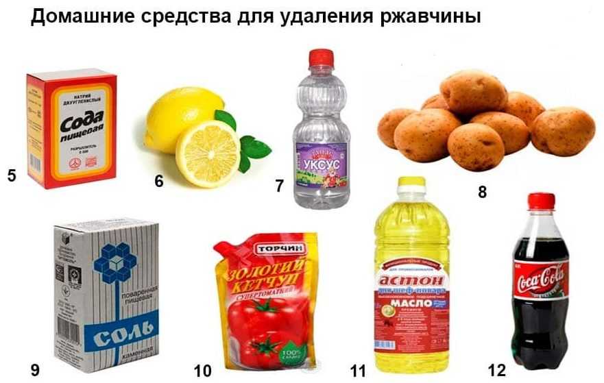 С помощью некоторых химических средств, используемых в быту, также можно избавиться от ржавчины. Правда, эффективность их меньше, но, если ржавчина въелась неглубоко, то подобные средства вполне могут справиться с ней. Так, можно использовать:
