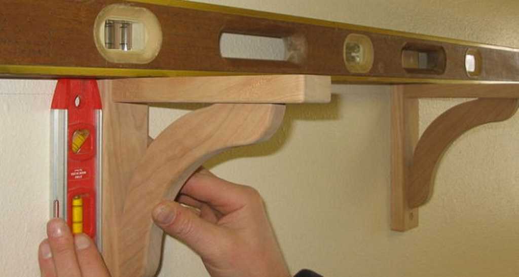 При расчетном методе кронштейны или петли должны быть закреплены заранее – это позволит осуществить точные замеры точек подвеса (отверстий или петель) и перенести их на стену при помощи линейки или рулетки. Шаблонный же, более прост – полка, как есть, прикладывается к стене и точки крепления обозначаются по факту