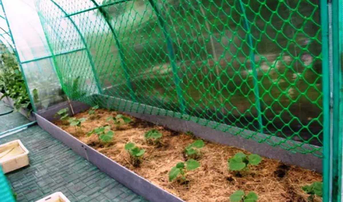 Если вы любитель экологически чистых овощей, то вам обязательно следует позаботиться о будущем урожая, а значит, и создать надежную шпалеру из подручных материалов. Использовать мы будем все, что и ранее, но вот только добавим в арсенал необходимых вещей специальную сетку ПВХ для выращивания огурцов.