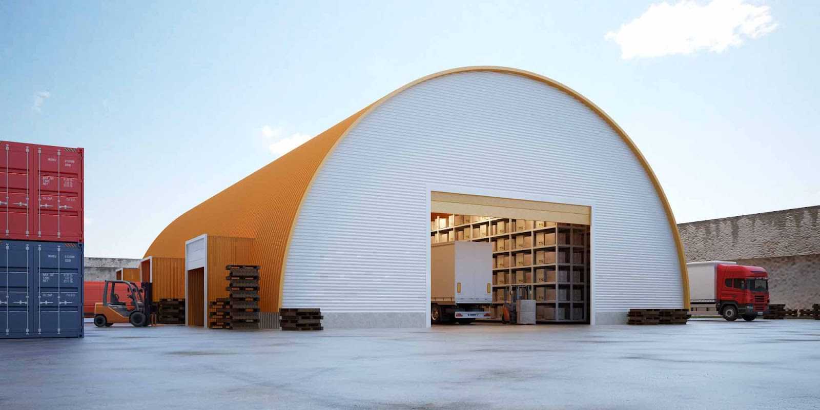 Сроки и цены на возведение современного быстровозводимого бескаркасного ангара под складское помещение